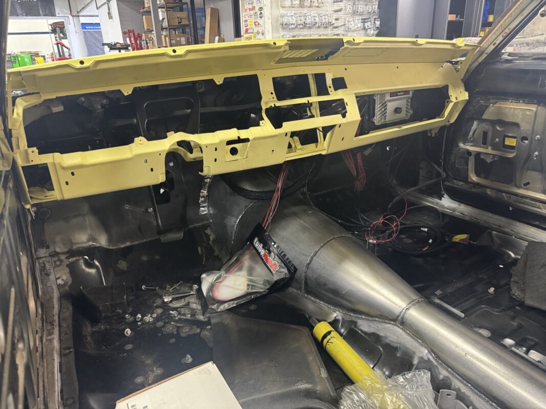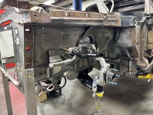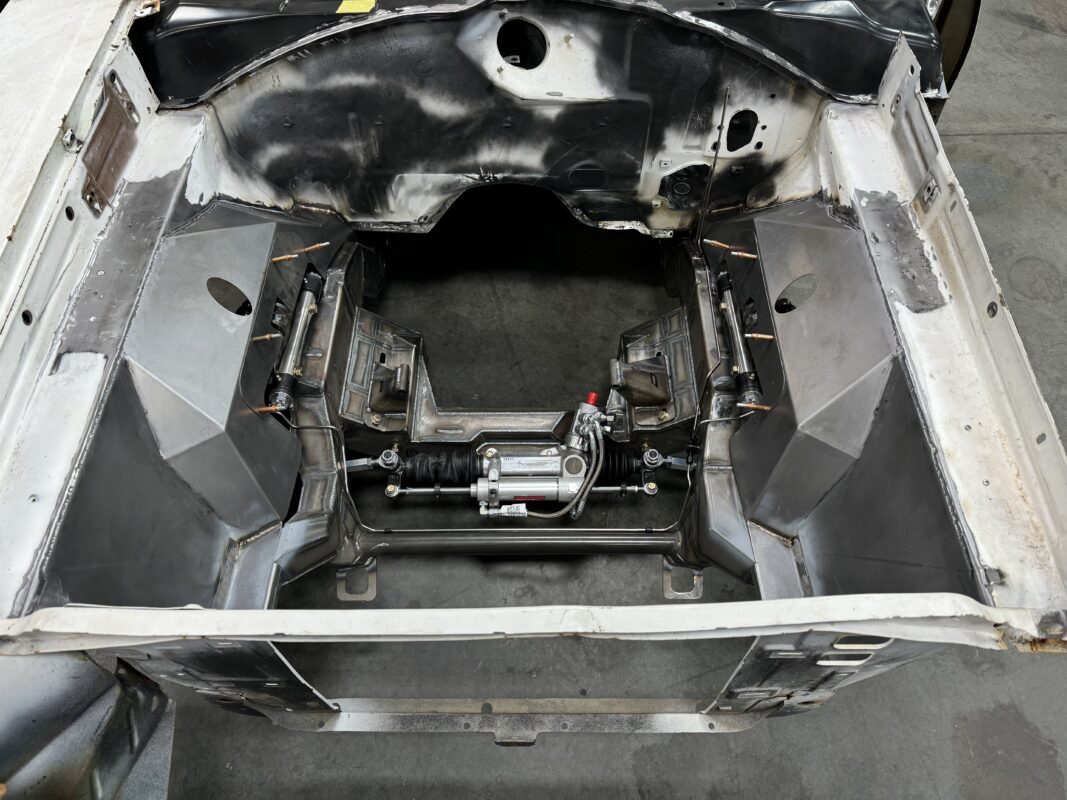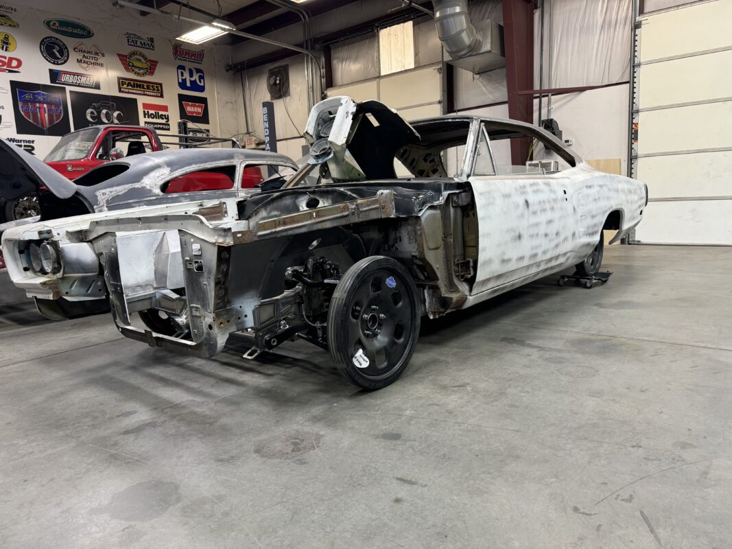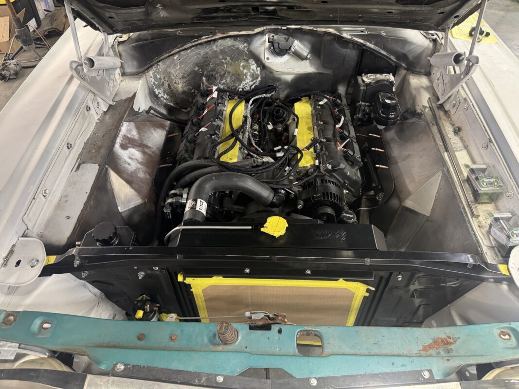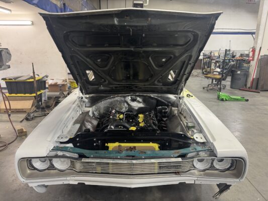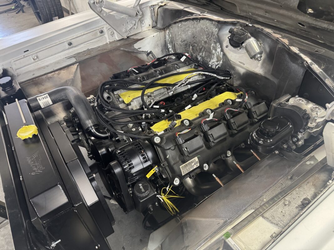Eric brought us his car wanting something with power and very aggressive stance. Body is sitting on the Speedtech Extreme chassis. Running a Gen III Hemi bored and stroked, backed with an 8HP tap shift transmission controlled by Turbo Lamik and a Holley Terminator, tucked and shaved bumpers, moldings etc., running a 315 front tire and a 345 rear tire. This beast is gonna handle what ever is thrown at it!