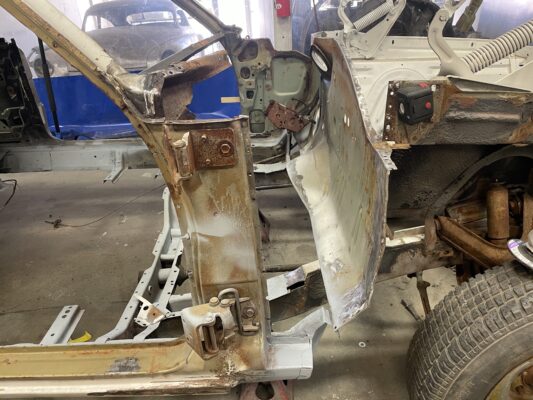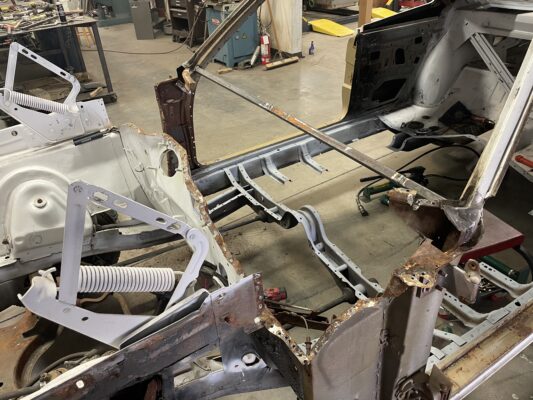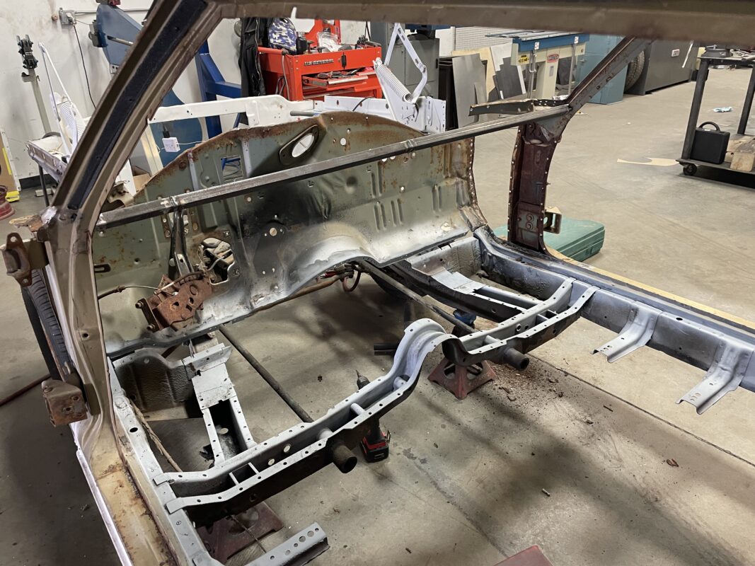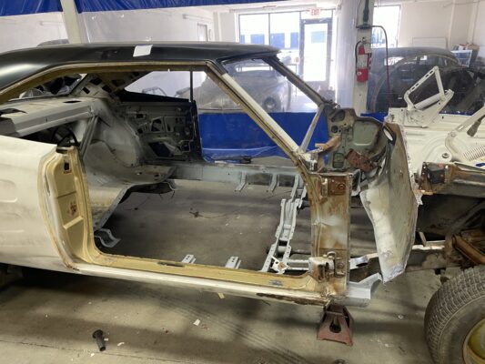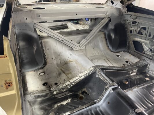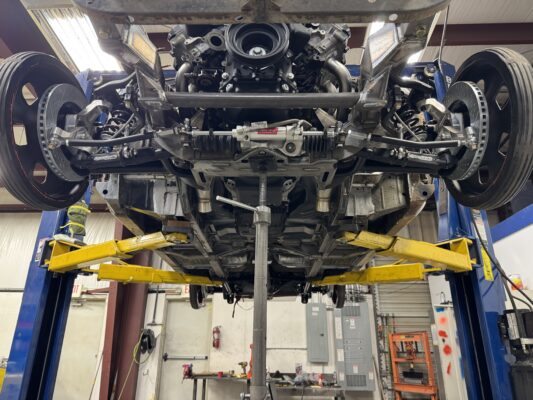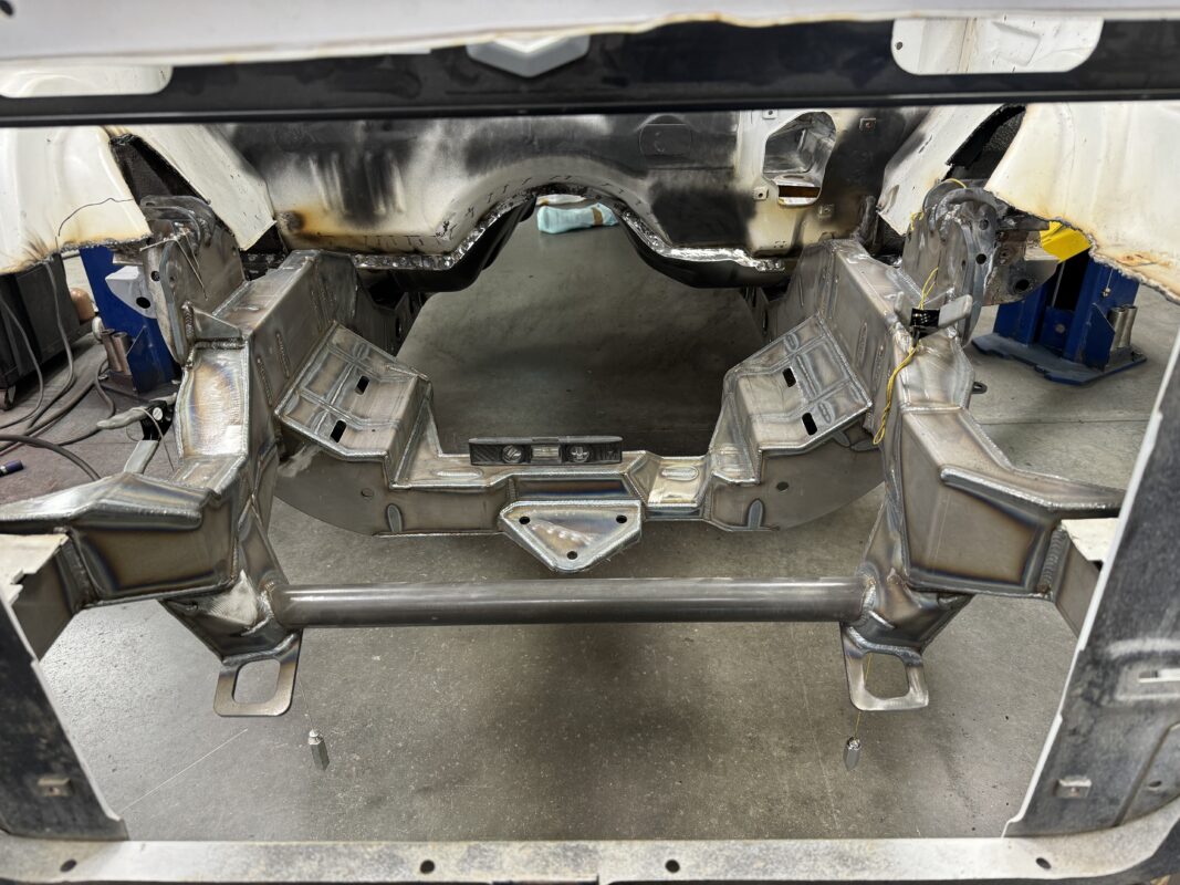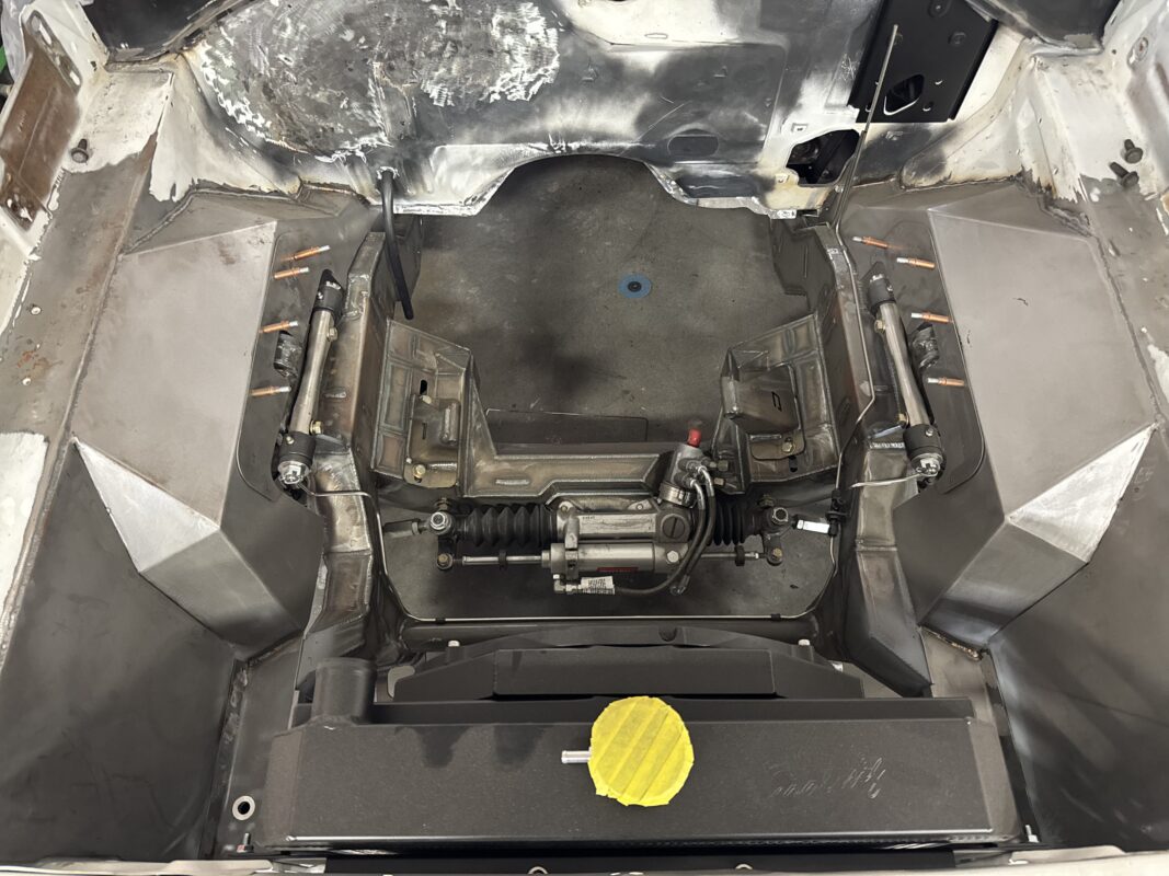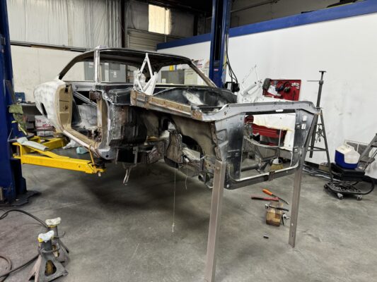 Eric brought us his car wanting something with power and very aggressive stance. Body is sitting on the Speedtech Extreme chassis. Running a Gen III Hemi bored and stroked, backed with an 8HP tap shift transmission controlled by Turbo Lamik and a Holley Terminator, tucked and shaved bumpers, moldings etc., running a 315 front tire and a 345 rear tire. This beast is gonna handle what ever is thrown at it!