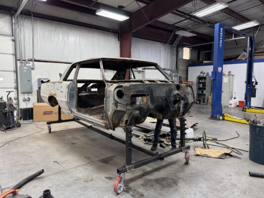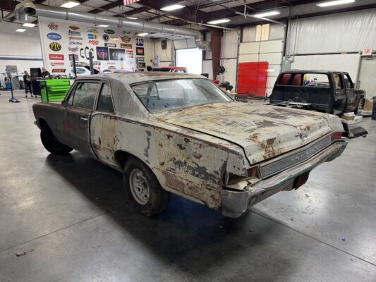 Michael brought us his and his dads car to update to all modern conveniences. Roadster Shop Spec chassis, 540HP LS3, tuck bumpers, shave trim and moldings, build interior, wire, exhaust, paint and body, metal finish all gaps, rust repairs galore, and just give them something back their family can enjoy for years to come reliably.