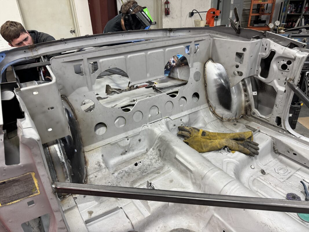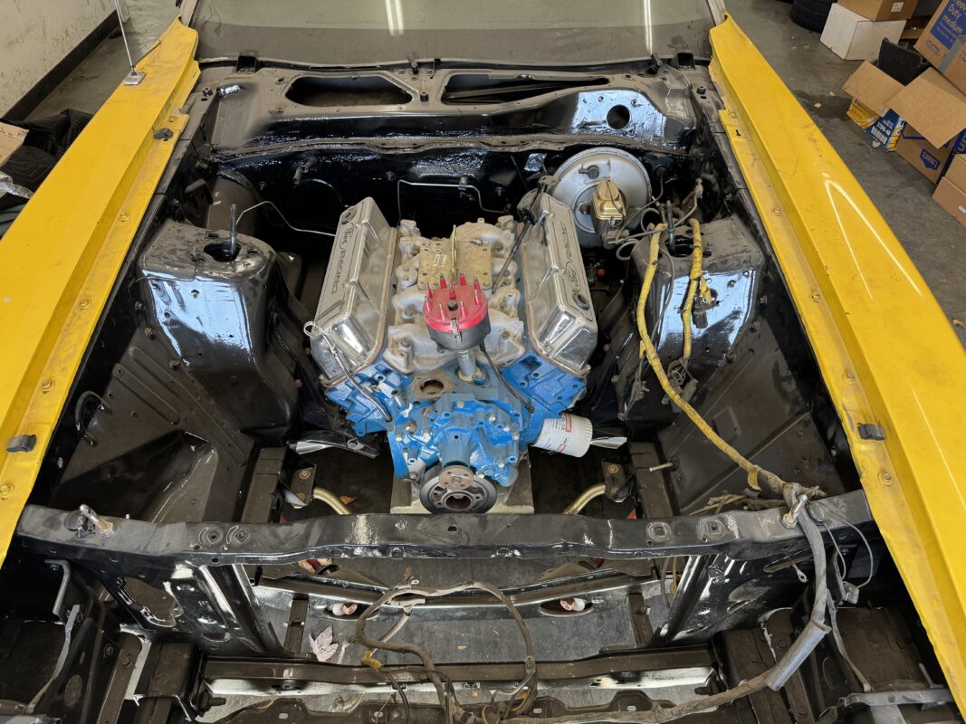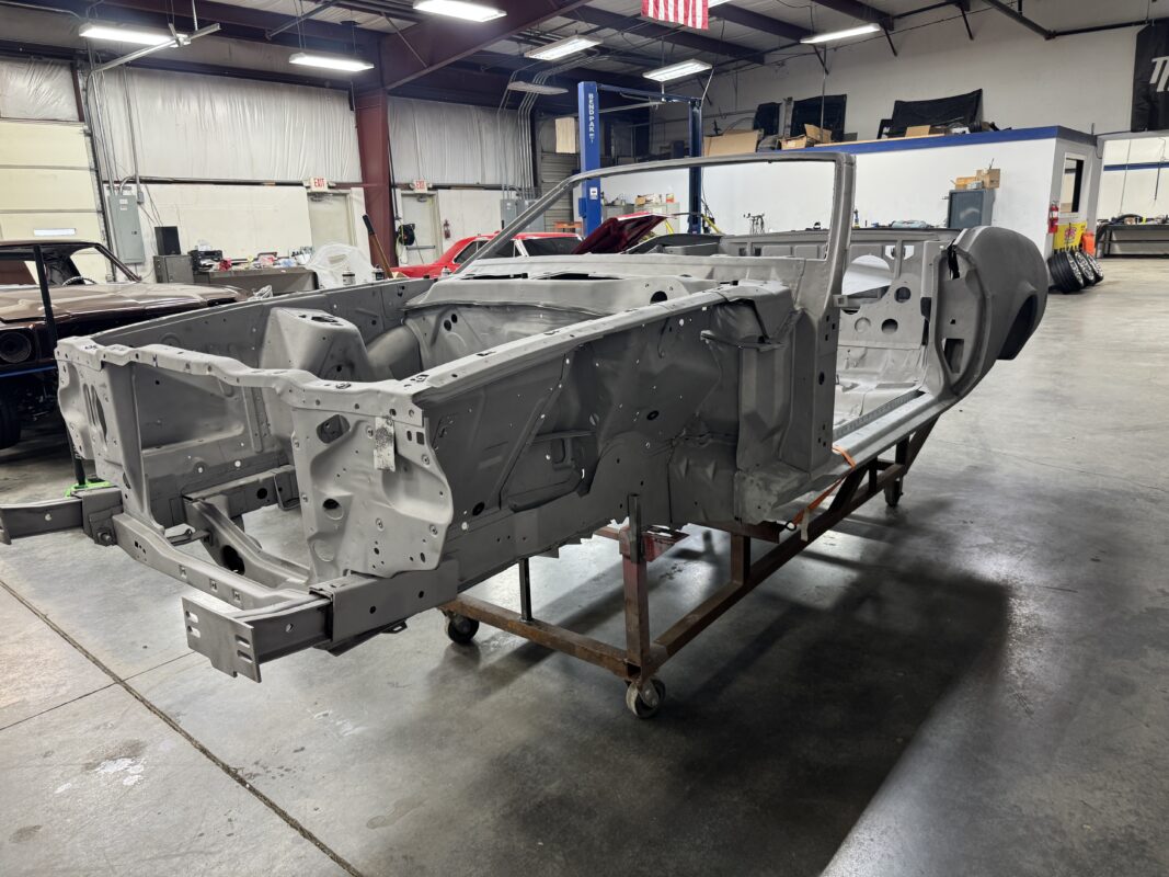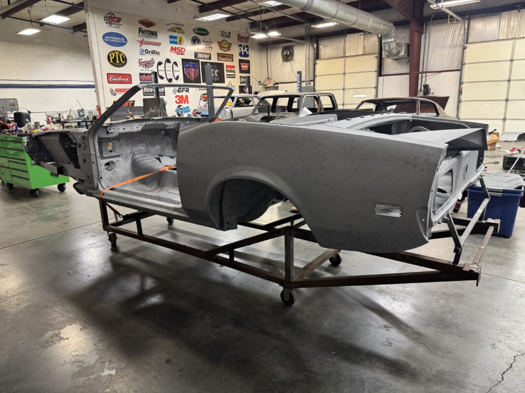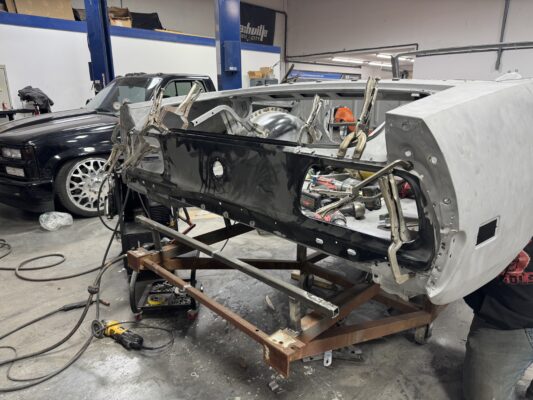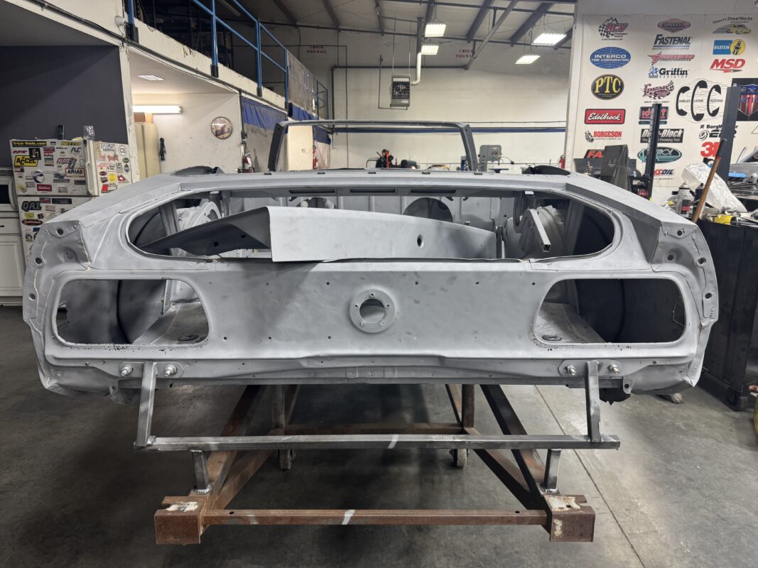 Scotty has had this car since he was 14 years old. He has always wanted to rebuild this car with all the modern conveniences. Schwartz Performance chassis, Gen III Coyote, 4r70w transmission, floater 9″ rear end and all the goodies from our Vendors and sponsors.