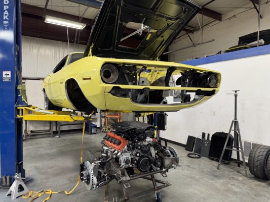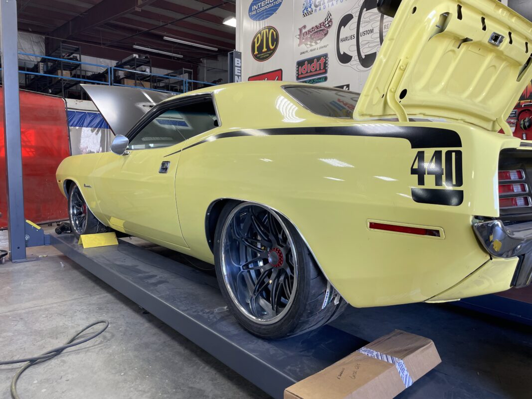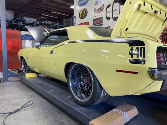 The customer brought us his 1970 Plymouth Cuda to tear into and make it drive and handle better than any Hellcat out there. We are running a Speedtech Extreme front and rear suspension, 1000hp Hellcat with a 3.0 Whipple, backed by a Bowler Carbon Edition T56 transmission. This Cuda will be a monster on and off the track.
