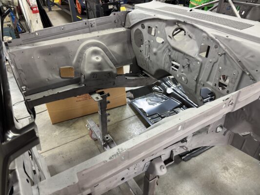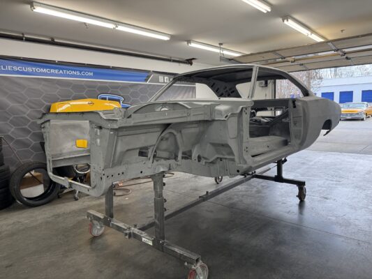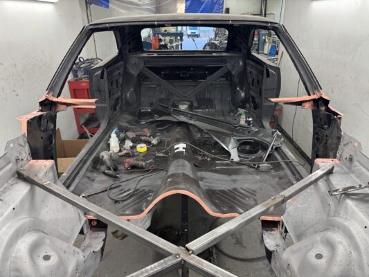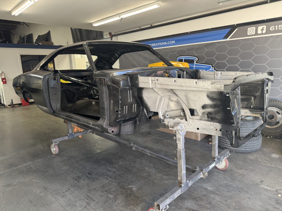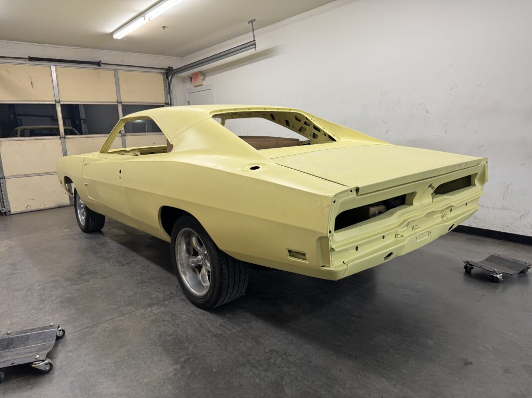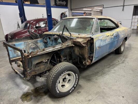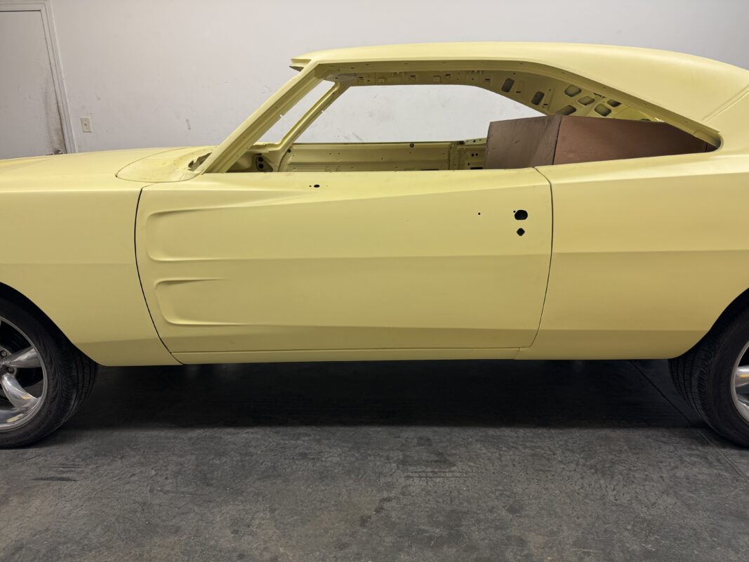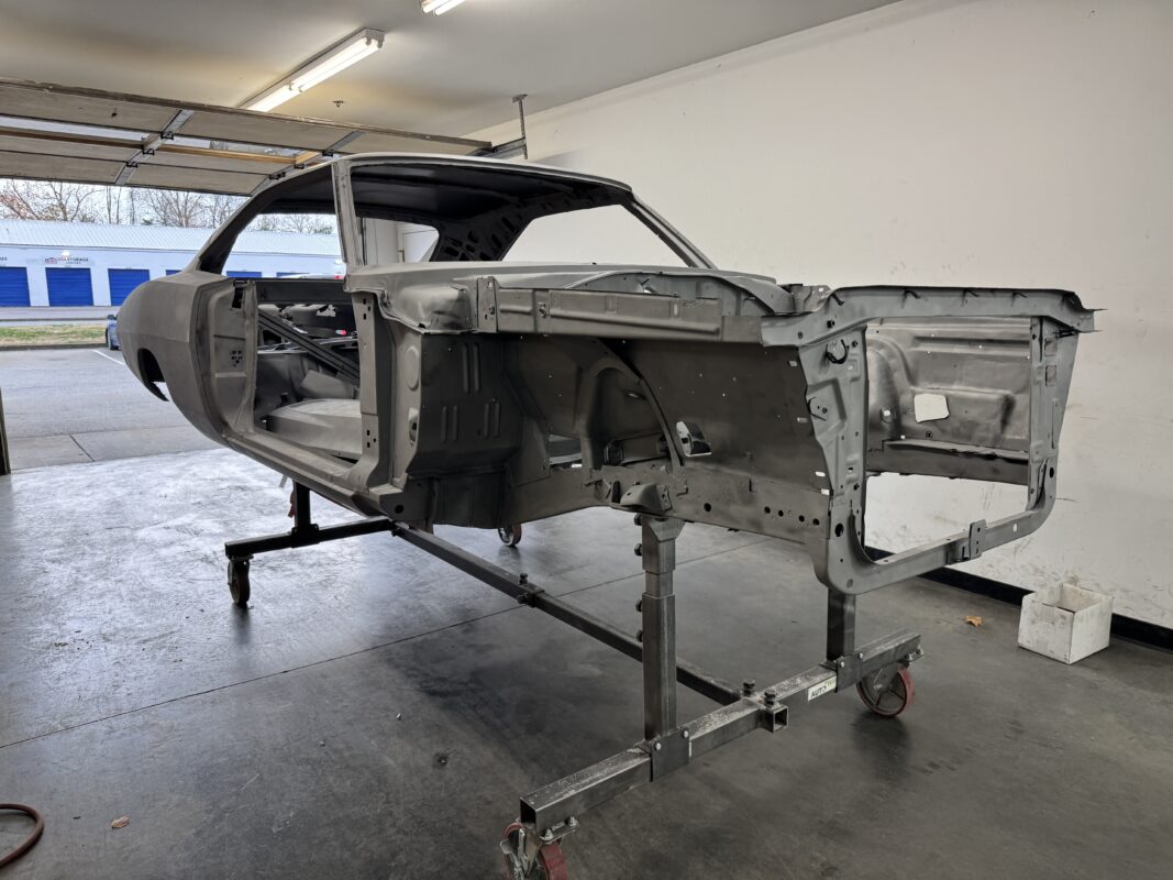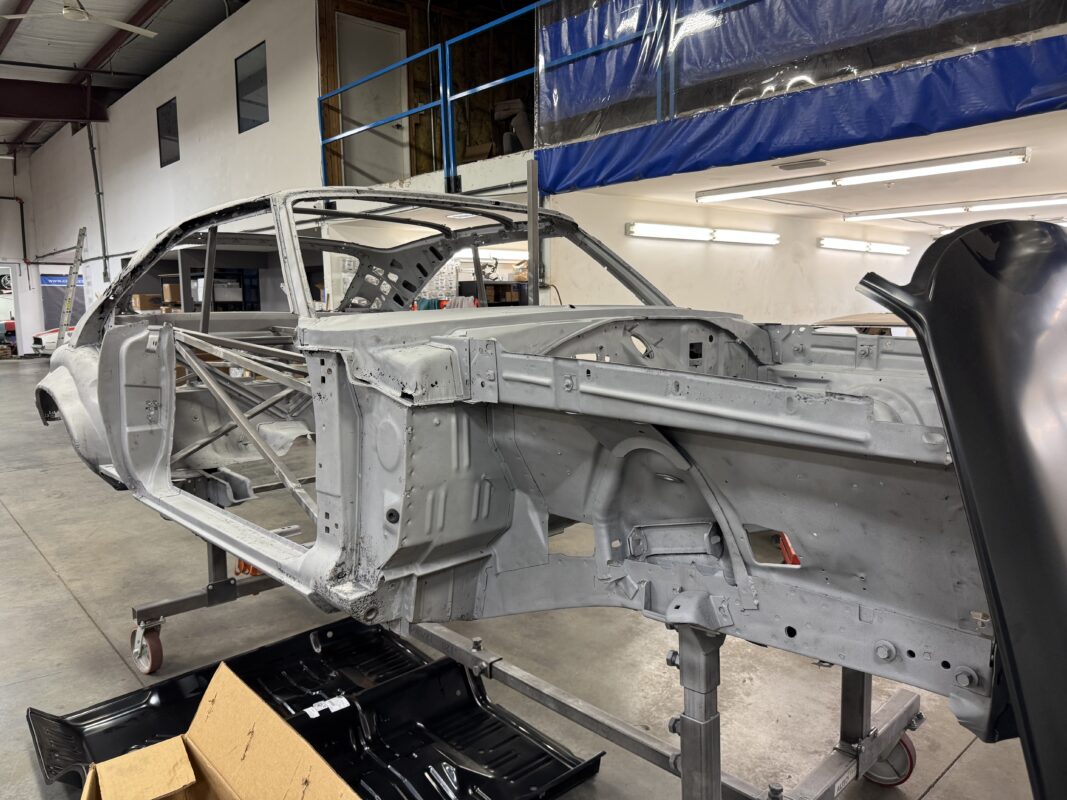Skyler brought us his 1969 Charger for much needed rust repair. Stripped most all of the sheet metal off and replaced with all good AMD sheet metal. Blasted the body again after all sheet metal was replaced and locked it down with a Restoration grade epoxy.