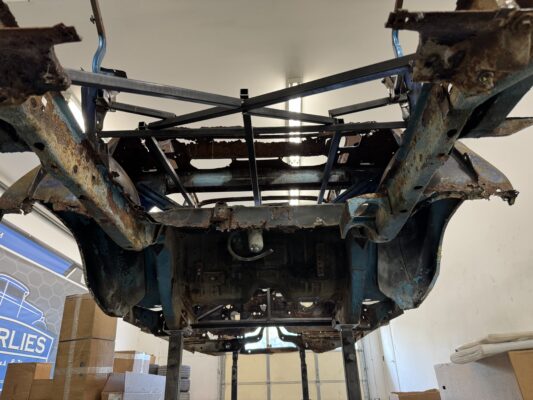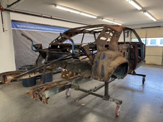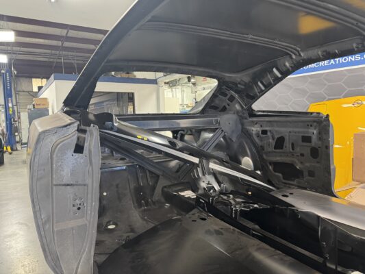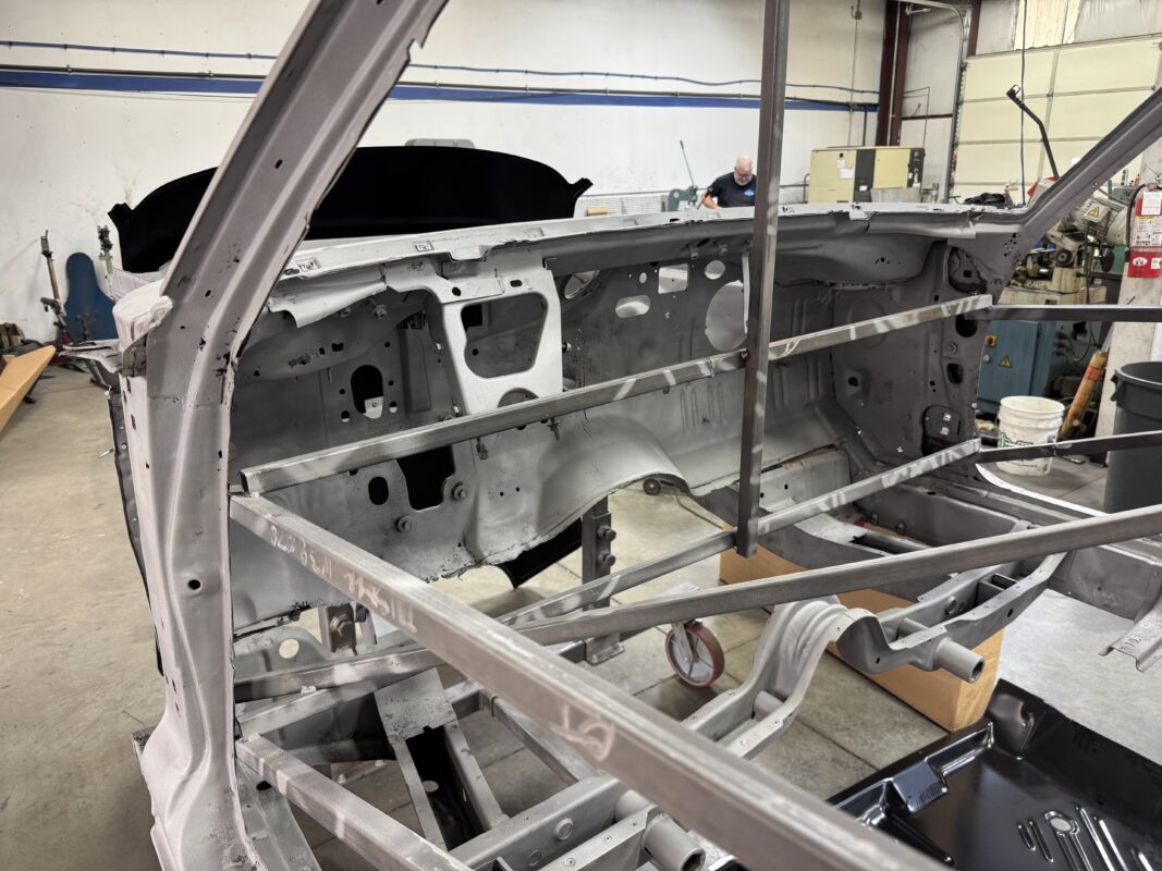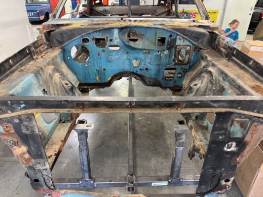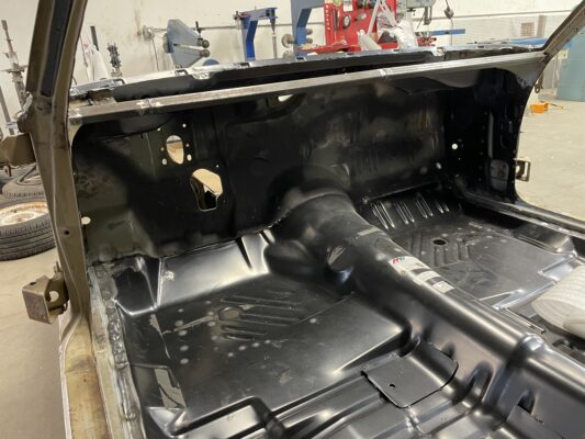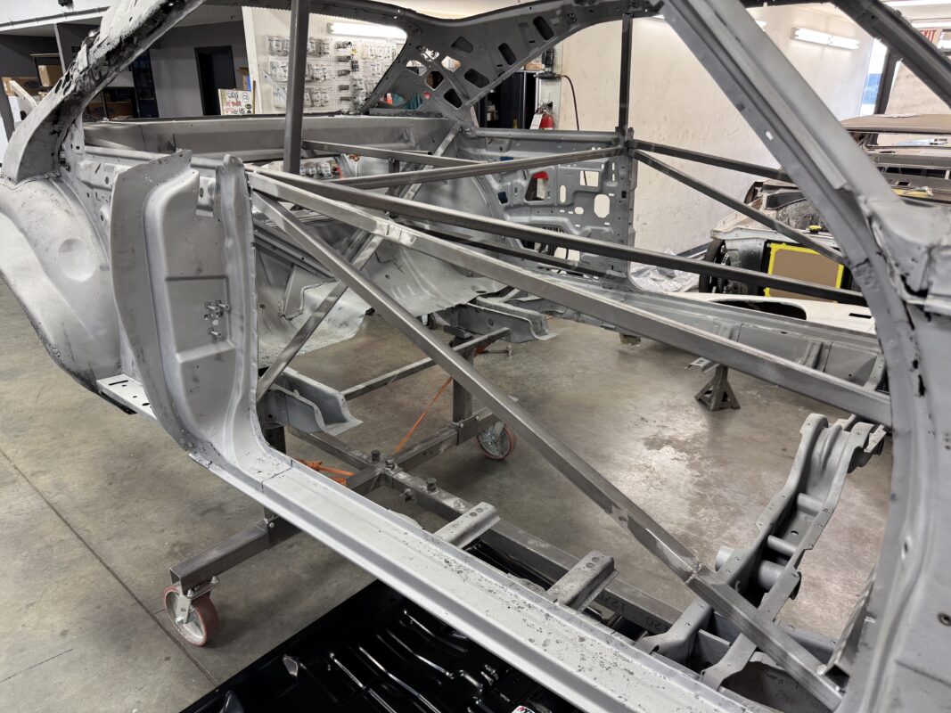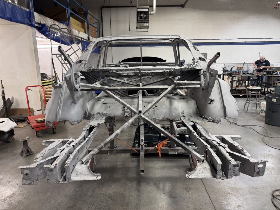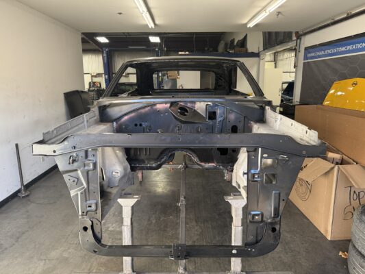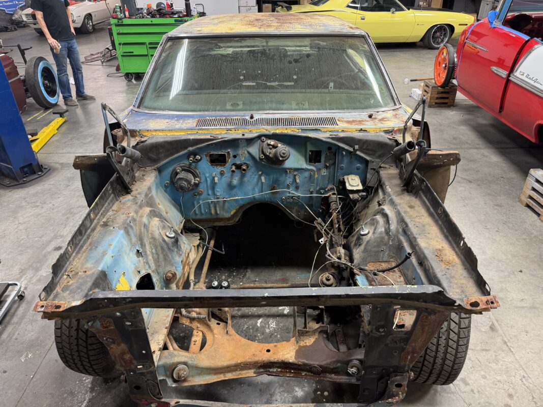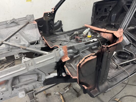 Skyler brought us his 1969 Charger for much needed rust repair. Stripped most all of the sheet metal off and replaced with all good AMD sheet metal. Blasted the body again after all sheet metal was replaced and locked it down with a Restoration grade epoxy.