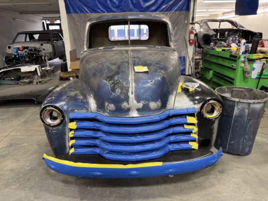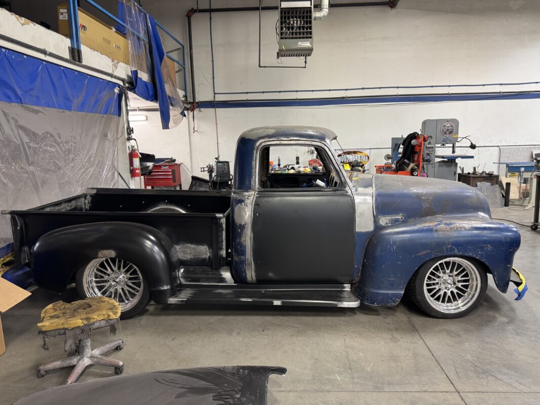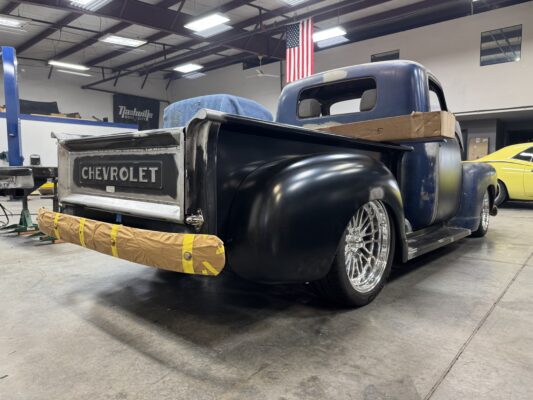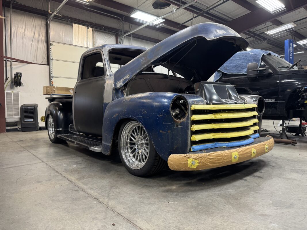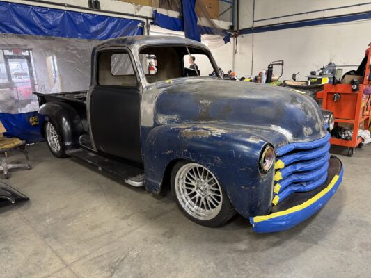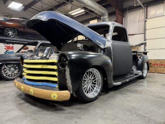 Abrams brought us his 1949 chevy 3100 pickup for a reliable Classic truck resto mod. We are running a Scotts Hotrods chassis with IFS and 4 link rear, 540Hp LS3 backed with a 4L70E and 9″ ford. Lots of small mods on this one with fit and finish, shaving, tucking, and smoothing out everything that can be. This truck is going to be an awesome driver and jaw dropper.
