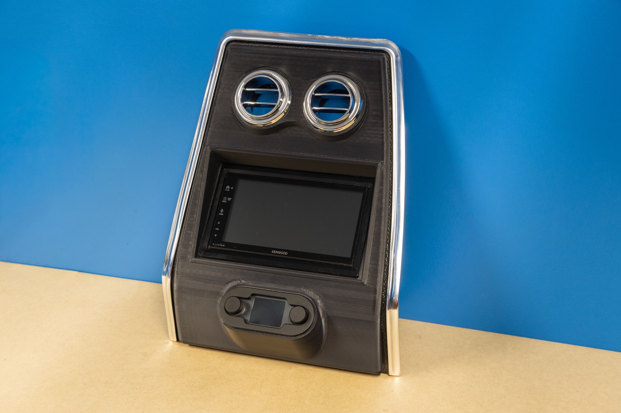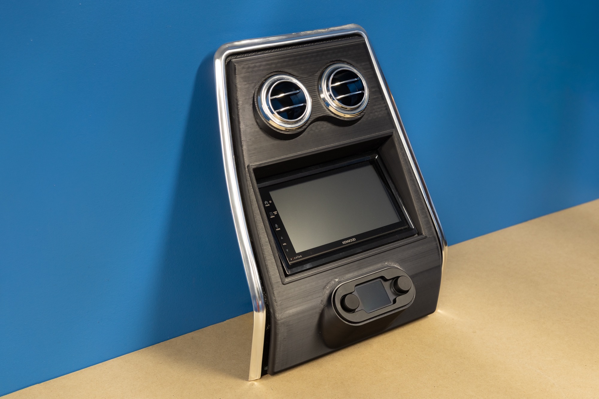 We use a Kenwood DMX709S double din head unit, 2.5″ dash vents and Dakota Digital DCC-4000 control. SOLD SEPERATELY.