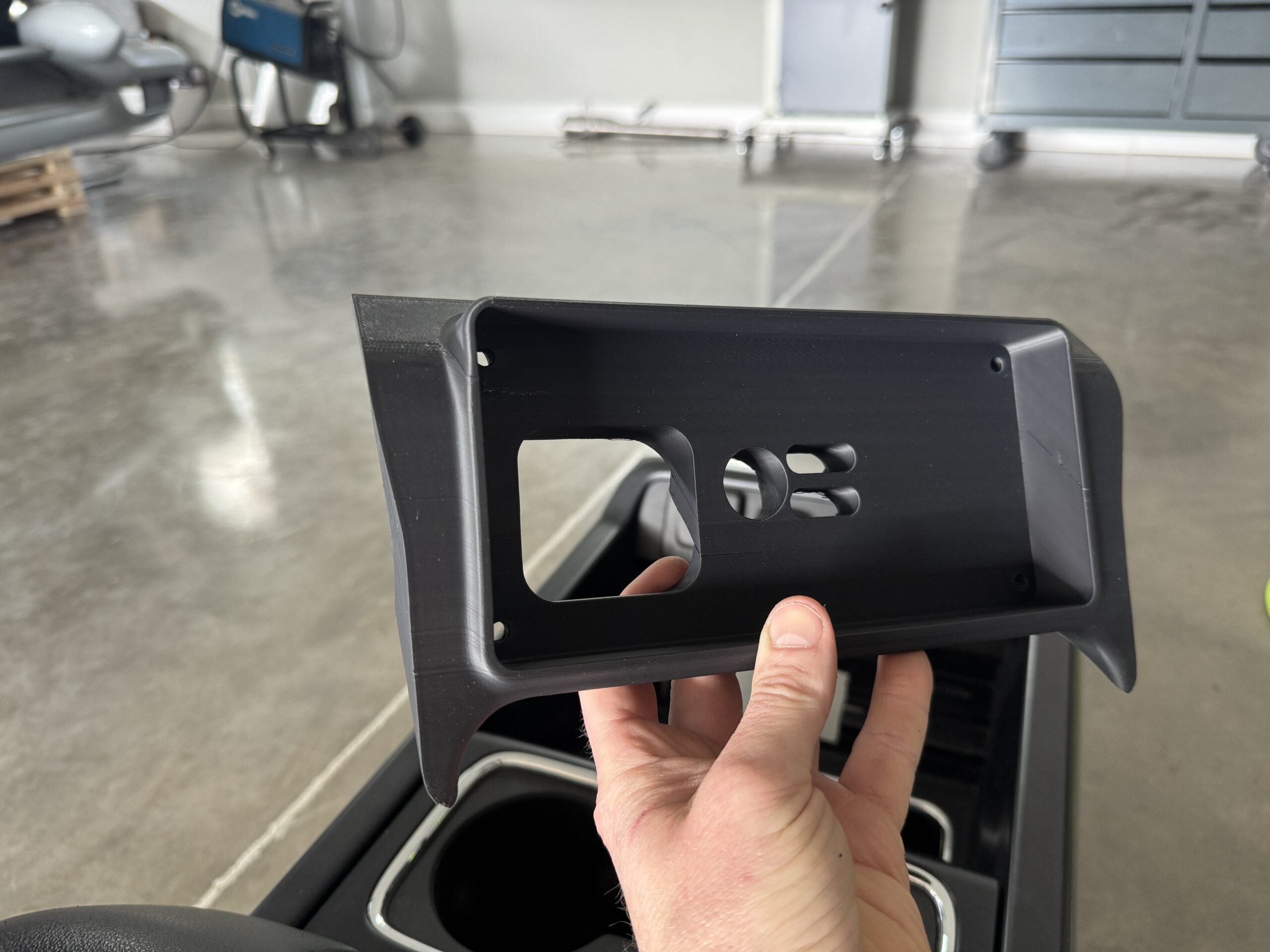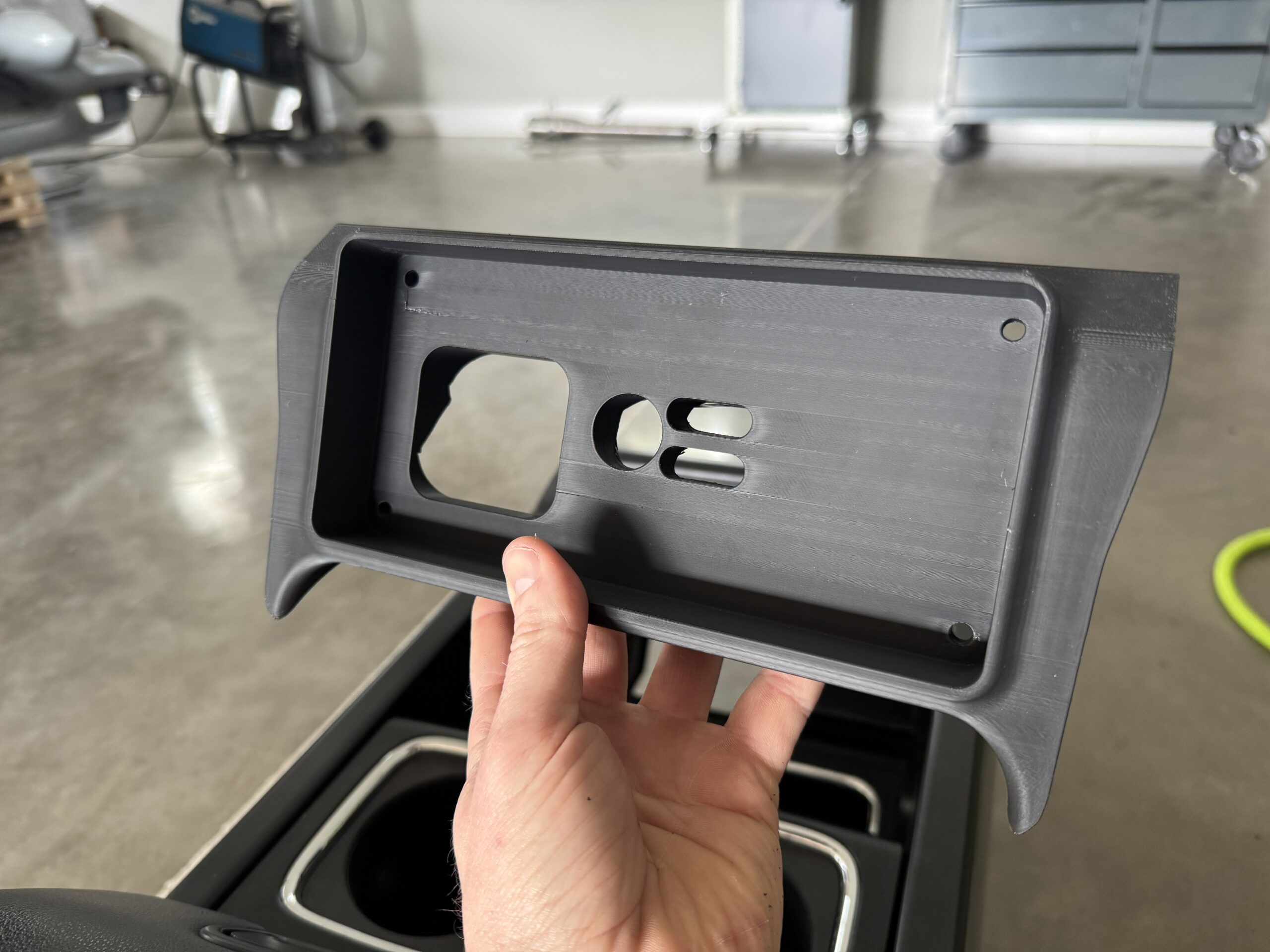 All products printed from high strength, UV and heat resistant ASA filament. Panel was scanned for proper fit and designed to have a 1/16″ gap to original console.